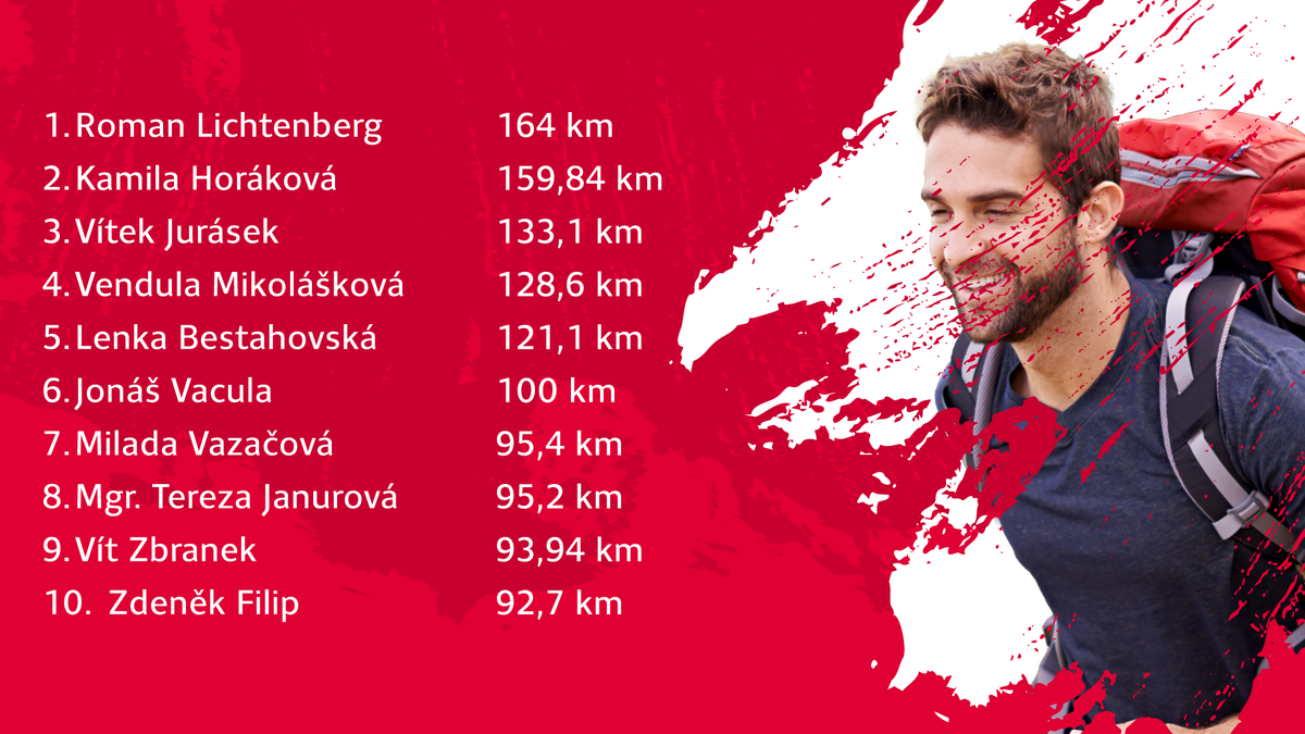 🏆 Tři s nejvíce kilometry – tři účastníci, kteří za celou dobu výzvy nasbírají v součtu nejvíce kilometrů